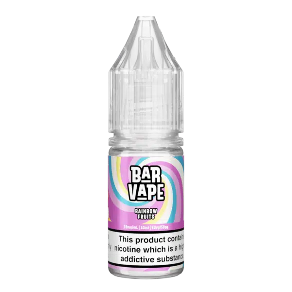 Rainbow Fruits – Bar Vape Salts packs a punch of vibrant, juicy flavours—from tangy citrus to sweet berries—blending together for a burst of fruity madness. A vape that’s pure, colourful joy! Taste the rainbow with every puff!